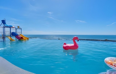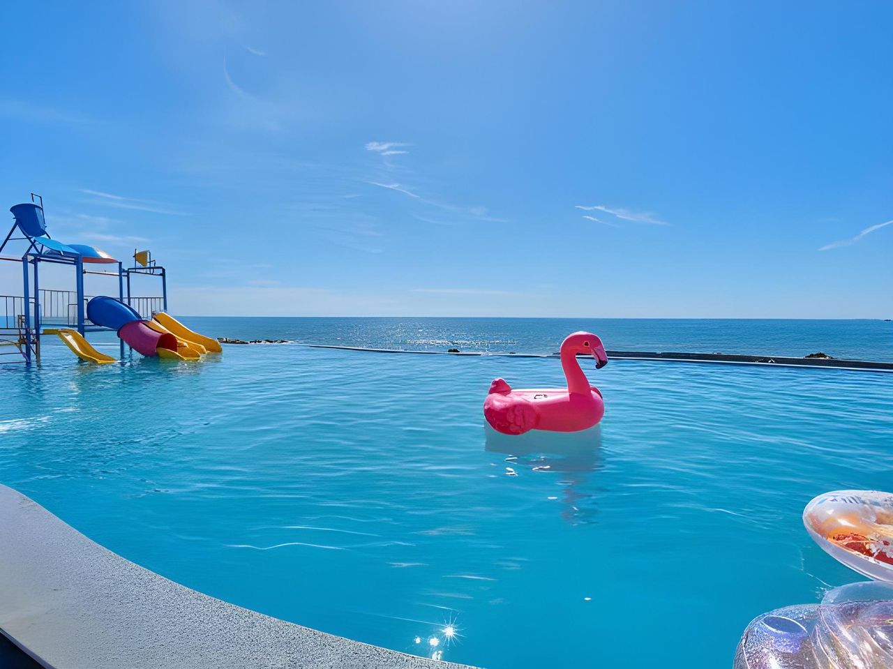 Vui chơi không giới hạn công viên nước, đường trượt phao khô view biển.
