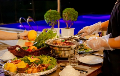 Quý khách vui lòng chọn set menu và thời gian sử dụng bữa ăn khi đặt phòng.