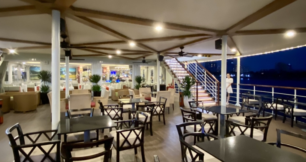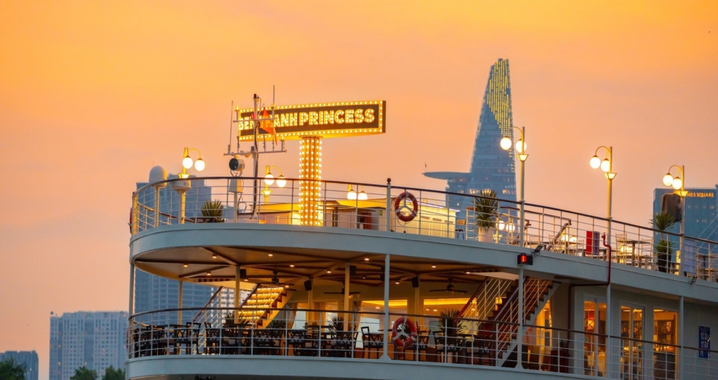 Khám phá Sài Gòn ở một khía cạnh khác, rực rỡ về đêm với những tòa cao ốc chọc trời lung linh sắc màu. Hãy cùng du ngoạn trên chiếc du thuyền Saigon Princess tiêu chuẩn 5 sao, sang trọng theo phong cách hoàng gia Châu Âu đưa bạn xuôi theo con nước khám phá bức tranh thành phố sống động. Với ba tầng, bốn phòng ăn riêng biệt và sân thượng, một không gian rộng rãi, đẳng cấp nhưng cũng không kém phần ấm cúng, bước vào bên trong bạn sẽ cảm thấy choáng ngợp bởi kiến trúc thiết kế đúng chuẩn phương Tây. Ngoài việc tận hưởng không khí mát mẻ, chiêm ngưỡng khung cảnh 2 bên dọc theo sông Sài Gòn mà bạn còn được thưởng thức một bữa tối lãng mạn với những món ăn chất lượng và ngon miệng. Với nhiều set menu cho bạn lựa chọn từ món Á đến món Âu tùy theo khẩu vị và sở thích của bạn.