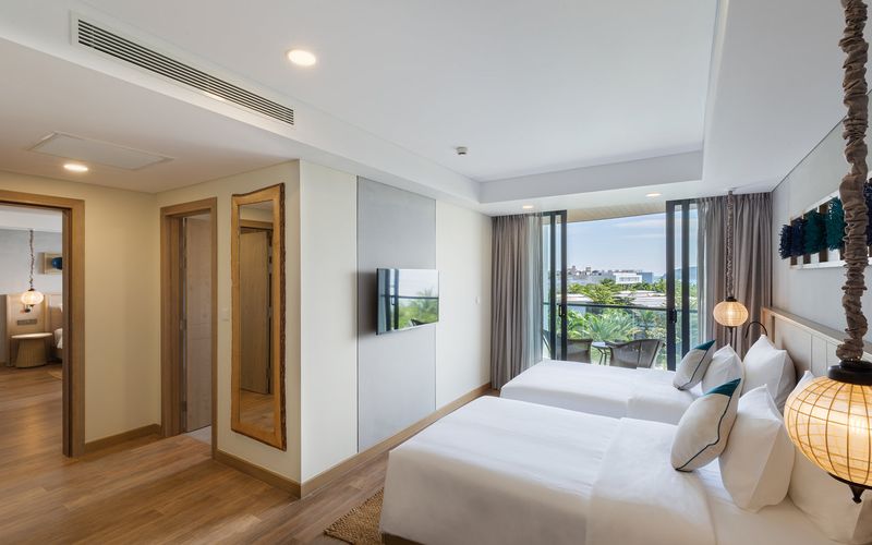 - Riêng hạng Plus 2 Suite - 02 Phòng Ngủ được tối đa 02 trẻ em dưới 12 tuổi ngủ chung giường với bố mẹ miễn phí bao gồm ăn sáng