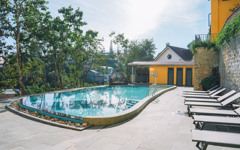 Khách sạn có bể bơi nước ấm ngoài trời.
