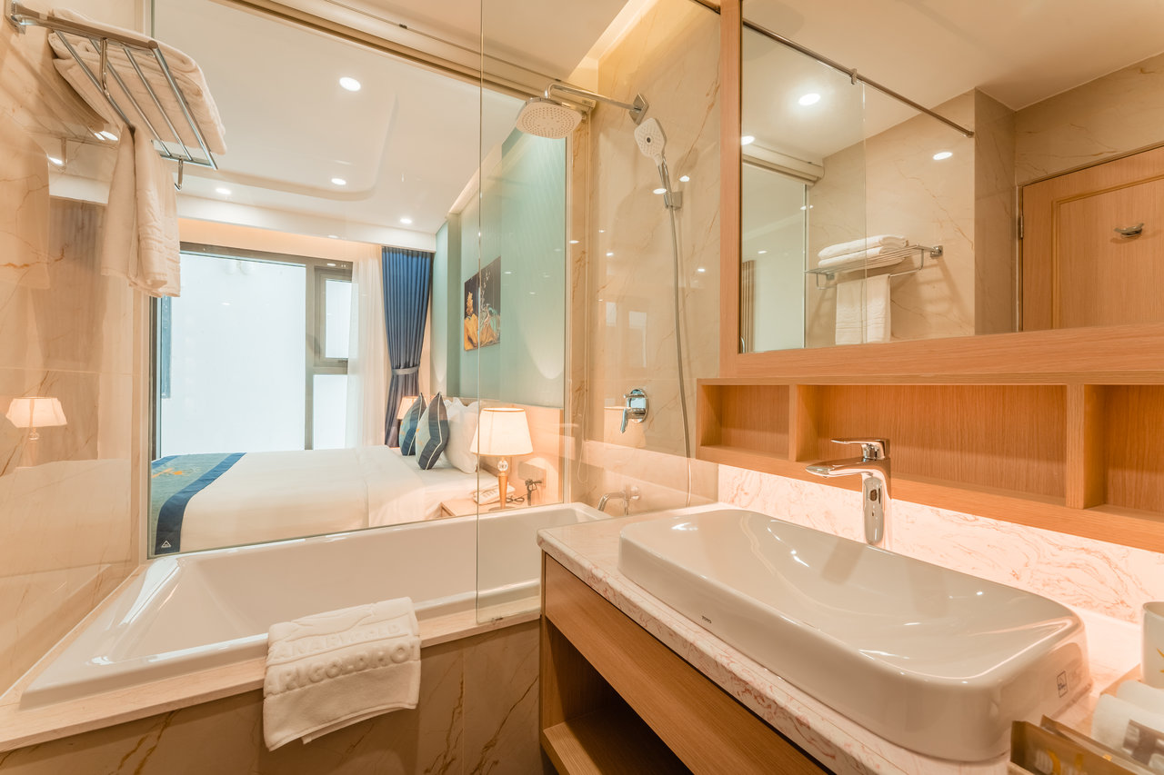 - Trẻ em từ 06 - 11 tuổi: Phụ thu ăn sáng 150,000 VNĐ/trẻ/đêm, ngủ chung giường với bố mẹ (Tối đa 02 trẻ/phòng). Nếu khách có nhu cầu kê giường phụ, phụ thu 400,000 VNĐ/trẻ/đêm bao gồm ăn sáng.