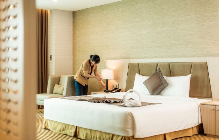 - Hủy phòng trong vòng 10 ngày (trừ thứ 7, chủ nhật, lễ, tết) so với ngày khách đến nhận phòng hoặc không đến: tính 100% tổng tiền phòng.