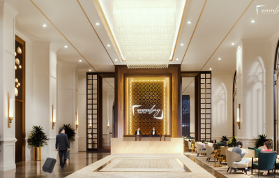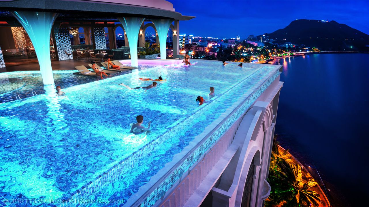 Khách sạn với kiến trúc tân cổ điển mang đậm hơi thở Châu Âu hiện đại cùng hai tòa tháp vươn mình kiêu hãnh giữa một vùng biển xanh ngát. Trước mặt là bờ biển trải dài, nơi hội tụ sinh khí của đất trời, mang đến nguồn tài lộc dồi dào và sự bình yên cho du khách đến nghỉ dưỡng.