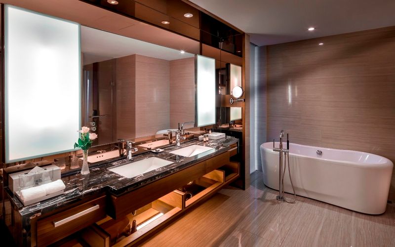 - Suite: Gồm 19 phòng, diện tích khoảng 80 m2, hướng biển hoặc thành phố, 01 giường đôi và không kê thêm giường phụ, phòng tắm có bồn tắm, đặc quyền vào Sảnh Executive Club Lounge.