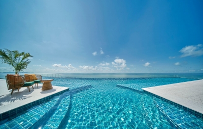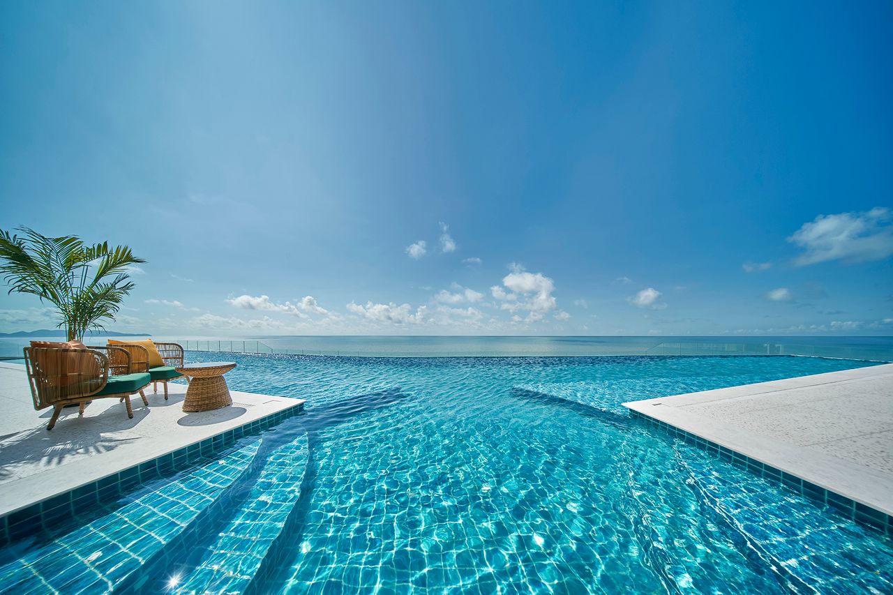 1/ Hồ bơi: Khách sạn có hồ bơi vô cực với kiến trúc hình vòng cung với tầm nhìn ra đại dương.