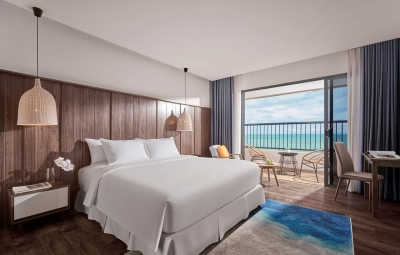 - Phòng Premium hướng biển (Premium Ocean View): Phòng có diện tích 33m2, được bố trí 01 giường đôi hoặc 02 giường đơn dành cho 02 người lớn + 02 trẻ em hoặc 03 người lớn. Phòng không thể kê thêm giường phụ. Tùy thuộc vào vị trí mà một số phòng có hướng nhìn ra biển. Phòng được thiết kế thêm ban công thông thoáng.