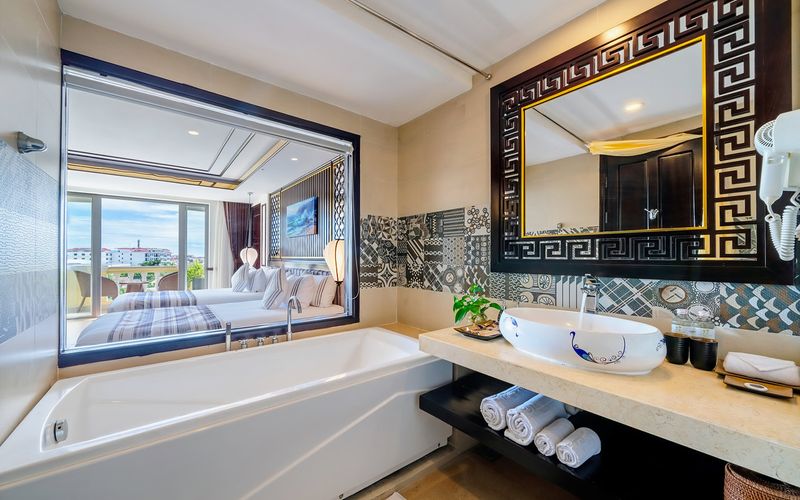 - Trẻ dưới 06 tuổi ngủ chung giường: Miễn phí ăn sáng, tối đa 01 trẻ/ phòng