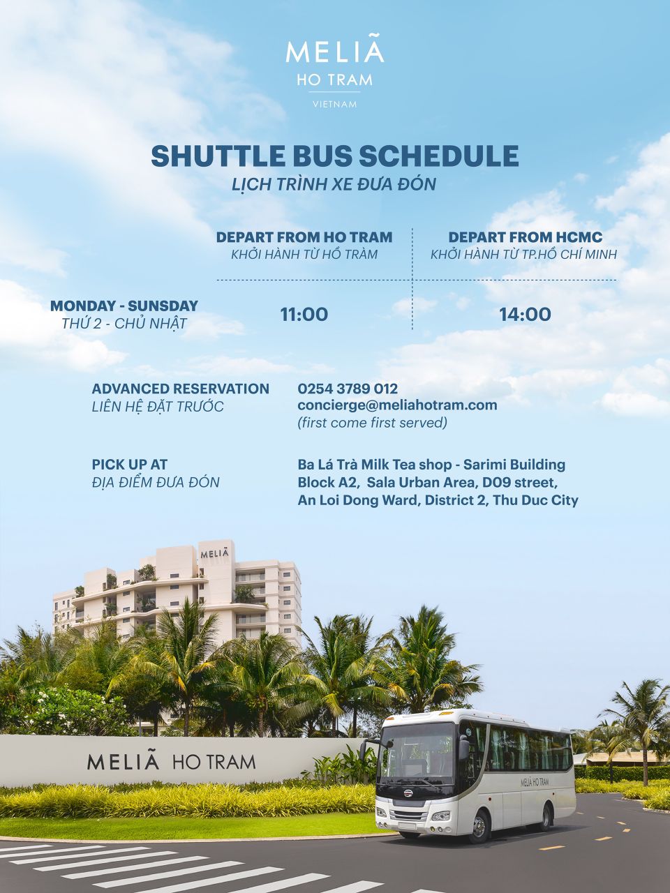 Resort có xe đưa đón miễn phí 2 chiều Hồ Chí Minh – Resort - Hồ Tràm dành cho khách lưu trú.