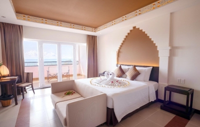 Diện tích 62m2, có ban công. Phòng gồm 01 giường đôi/02 giường đơn, bàn làm việc, sofa, buồng tắm đứng/ nằm. Sức chứa tối đa 03 người (có thể kê thêm 1 giường phụ).