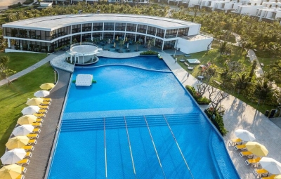 Hồ bơi: Resort có 1 hồ bơi chính với diện tích 2.000 m2 được chia thành khu vực dành cho người lớn và khu vực dành cho trẻ em, với độ sâu từ 0.6m đến 1m65 (Giữa hồ lớn và hồ trẻ em có dây phao giăng, có 1 sàn catwalk ở giữa để phân cách 2 bên).