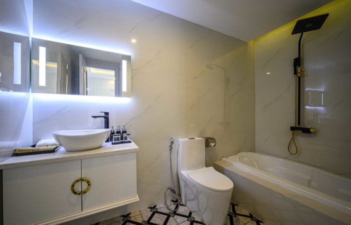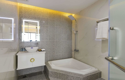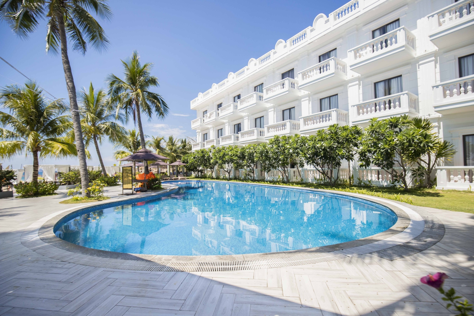 Bên cạnh đó, mãn nhãn với hồ bơi sang chảnh, quầy Bar ngoài trời trên rooftop phóng thẳng tầm mắt ra biển với bãi cát trắng mịn, khu thể thao view biển, nhà hàng tiêu chuẩn 5 sao với không gian sang trọng, ấn tượng phục vụ các món Á – Âu và các món đặc sản vùng miền sẽ mang đến trải nghiệm ẩm thực tuyệt vời cho du khách.
