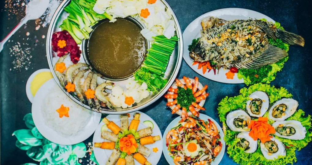 Các thực đơn đa dạng với những món ăn Âu Á và những món đặc trưng của Việt Nam được chế biến từ những đầu bếp giàu kinh nghiệm, chắc chắn sẽ cho bạn một buổi tối ngon miệng. Vừa thưởng thức hương vị đặc biệt của từng món ăn vừa xem những màn trình diễn nhạc và múa dân tộc đặc sắc từ các nghệ sĩ trong ban nhạc Dân Tộc, đây sẽ là lựa chọn hoàn hảo để kết thúc một đêm trọn vẹn bên cạnh những người thân yêu.