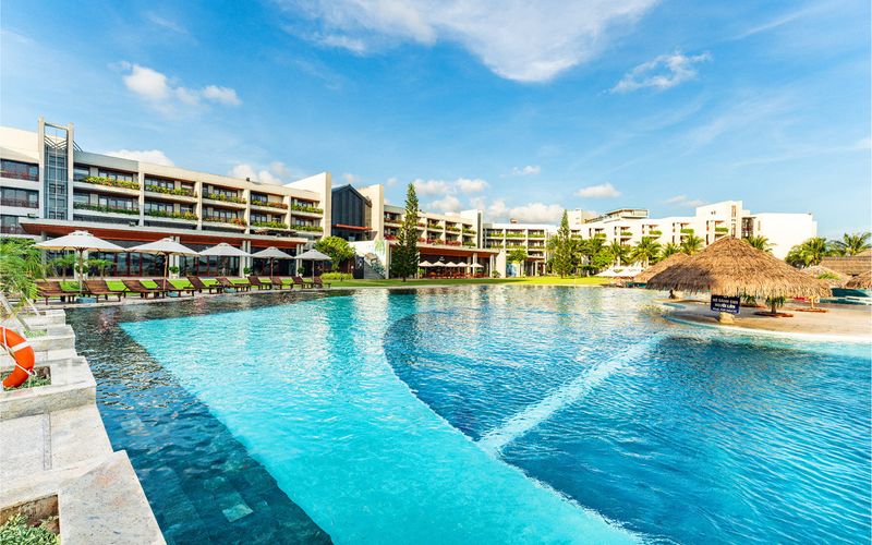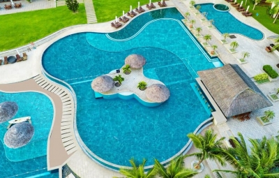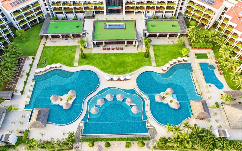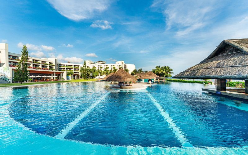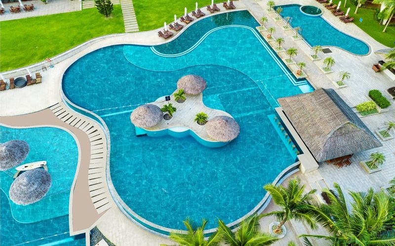 1/ Hồ bơi: Resort đặc biệt thiết kế hệ thống 04 hồ bơi nằm dọc bờ biển với diện tích hơn 5000m2, trong đó có 03 hồ bơi người lớn và 01 hồ bơi trẻ em, trong đó có 01 hồ bơi nước mặn. Có nhân viên cứu hộ trong thời gian mở cửa.